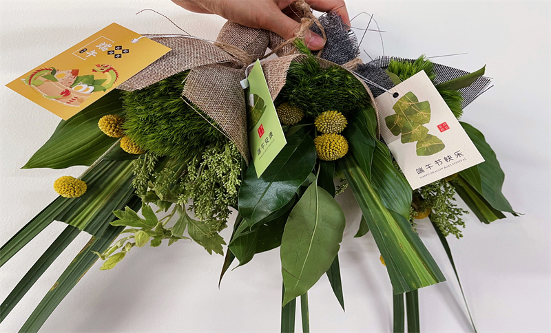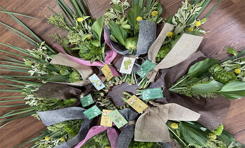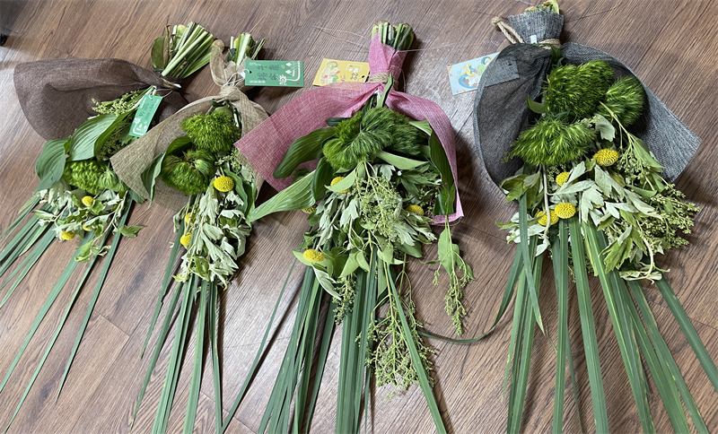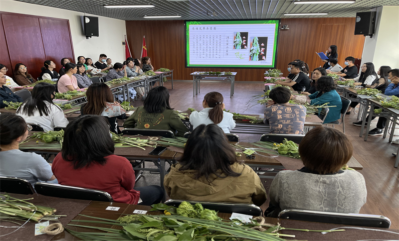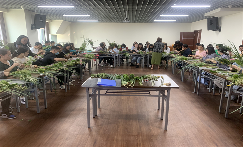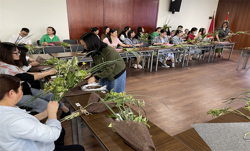 由工會(huì)會(huì)員代表現(xiàn)場(chǎng)教學(xué),參與人員自己動(dòng)手制作菖蒲艾草祈福花束。現(xiàn)場(chǎng)一片熱鬧祥和的氣氛。