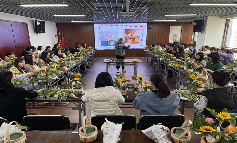 “在插花的過程中,通過與花的接觸,感受到生活的寧靜與美好,感受到插花藝術(shù)無與倫比的魅力?!必攧?wù)室女職工說道。