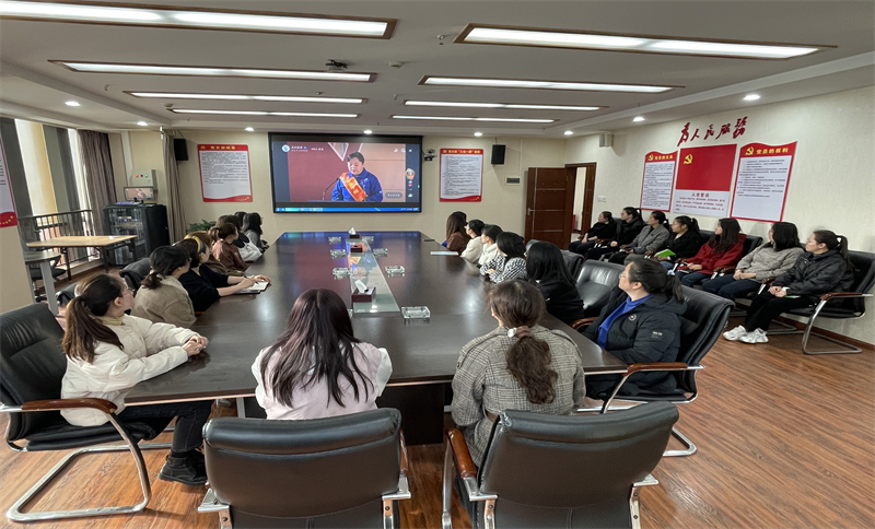 公司工會主席、省建設工會女工委員趙格同志現場參會,公司辦公室組織全體黨員干部及在職在崗女職工,在十樓2號會議室同步集中觀看直播。