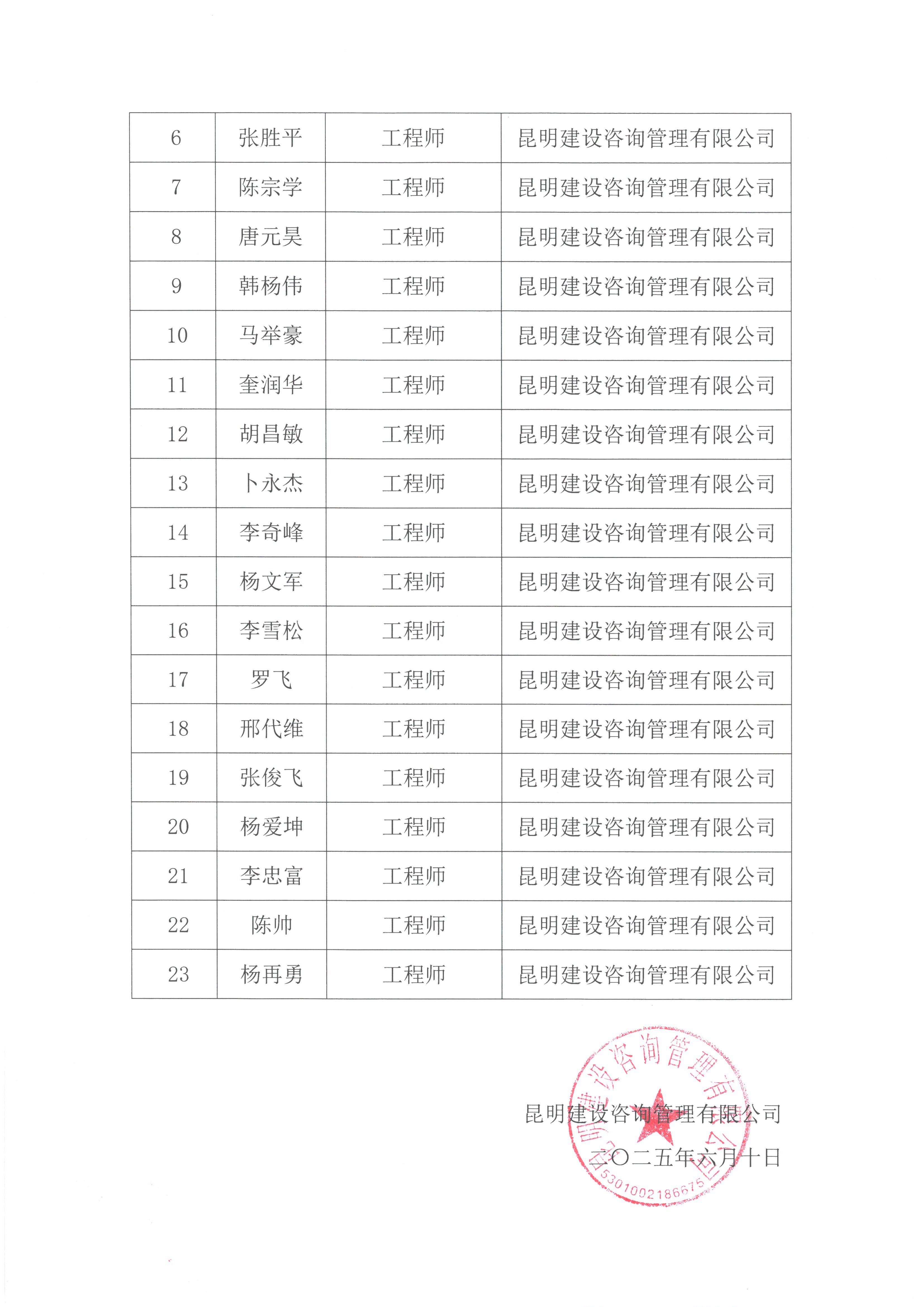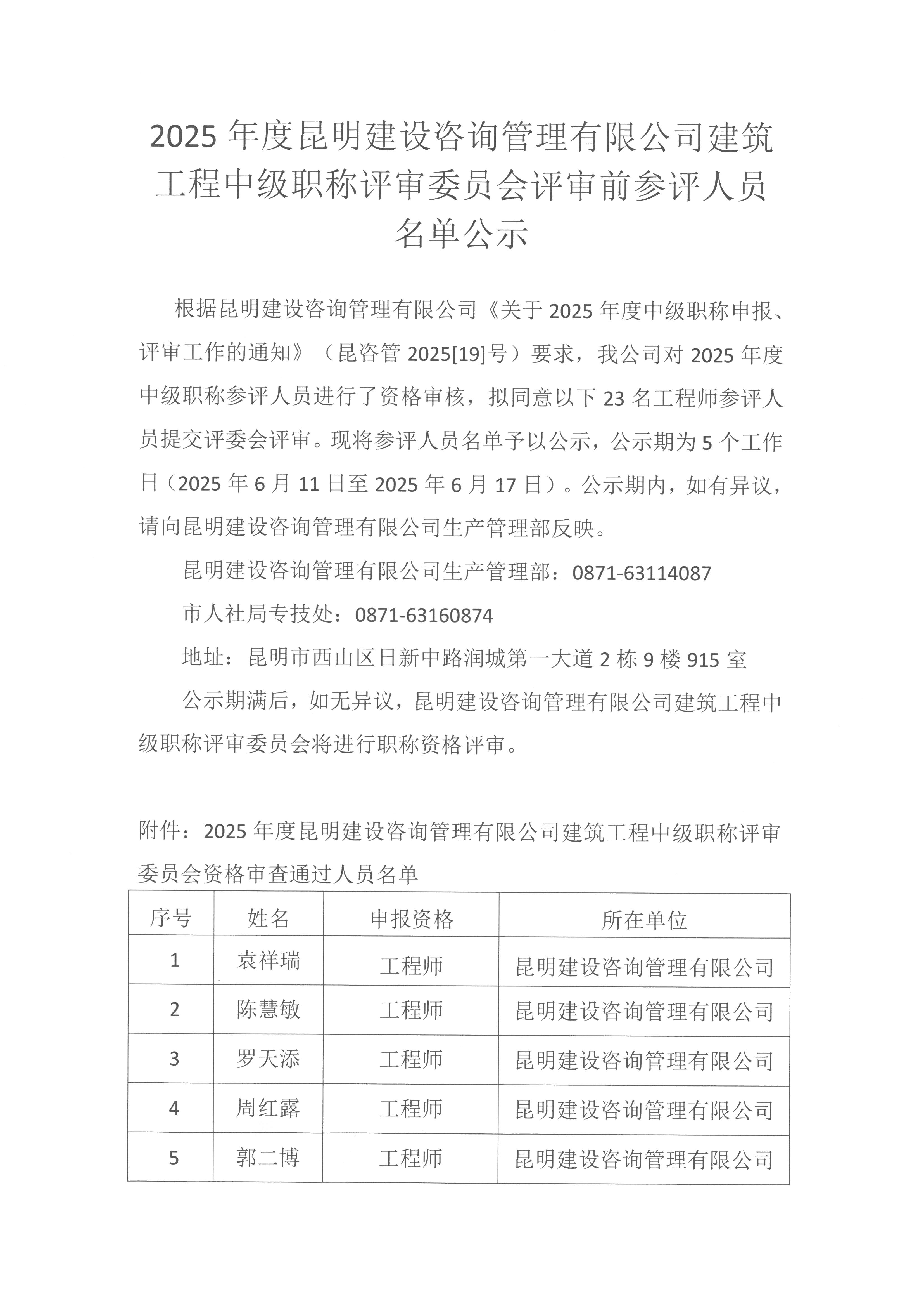 2025年度昆明建設咨詢管理有限公司建筑工程中級職稱評審委員會評審前參評人員名單公示